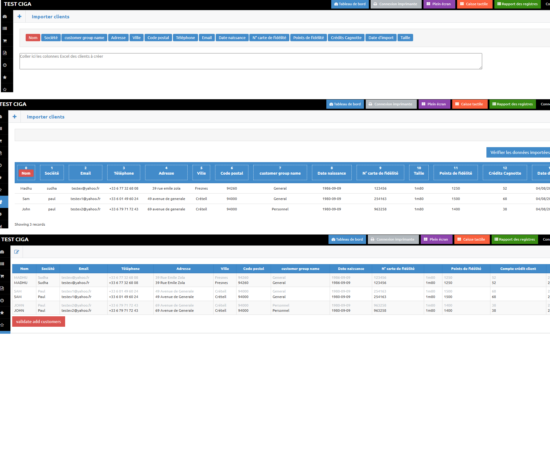 • Cliquer sur le menu « Importer des clients ».