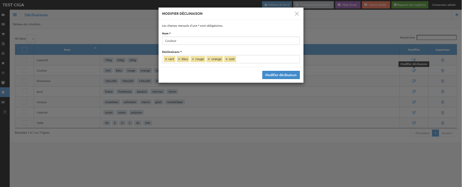 Le nombre maximum de déclinaisons que l’on peut ajouter est de 10, car elles seront appliquées lors de la création de produits multiples(Chapitre 4.1)