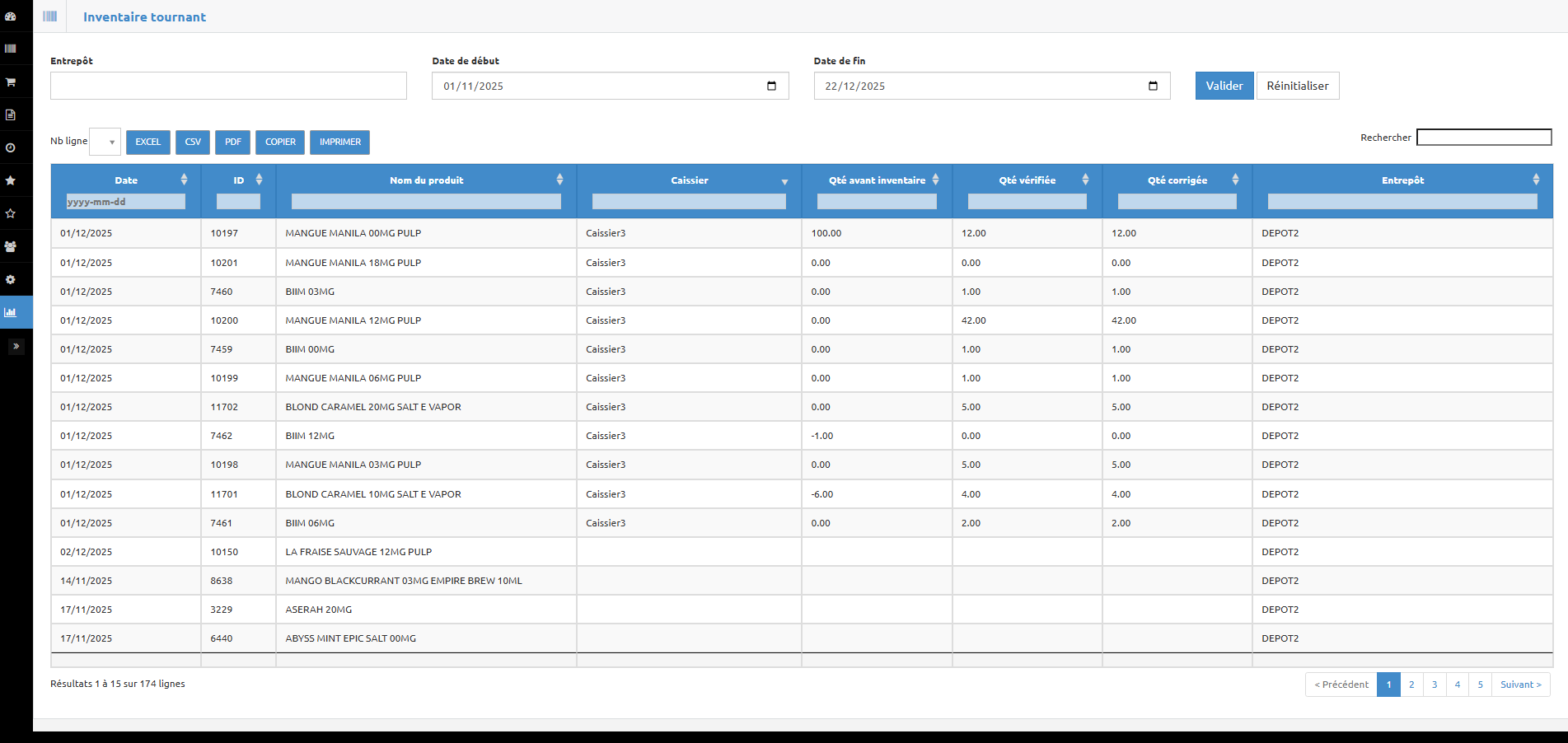- L’intégralité des mouvements de stock grâce à la gestion multi-entrepôts (1), (2), (3),